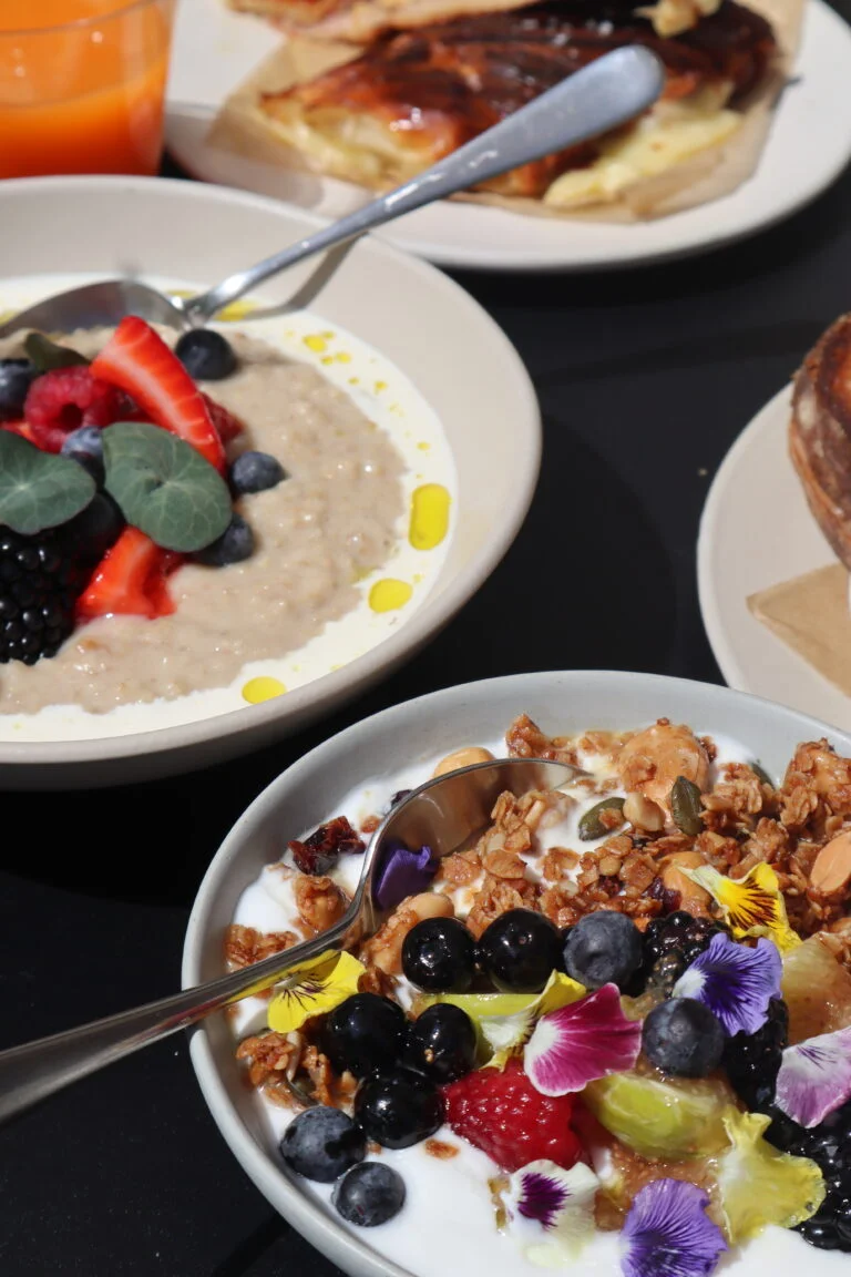The day begins with freshly baked pastries and a thoughtful coffee program built around quality and comfort. It’s a space for early meetings, quiet rituals or something sweet to start the day.