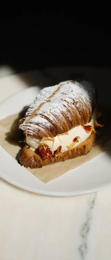 O dia começa com pastelaria preparada diariamente e um programa de café pensado com qualidade e conforto. Um espaço para reuniões madrugadoras, rituais silenciosos ou apenas algo doce para começar bem o dia.